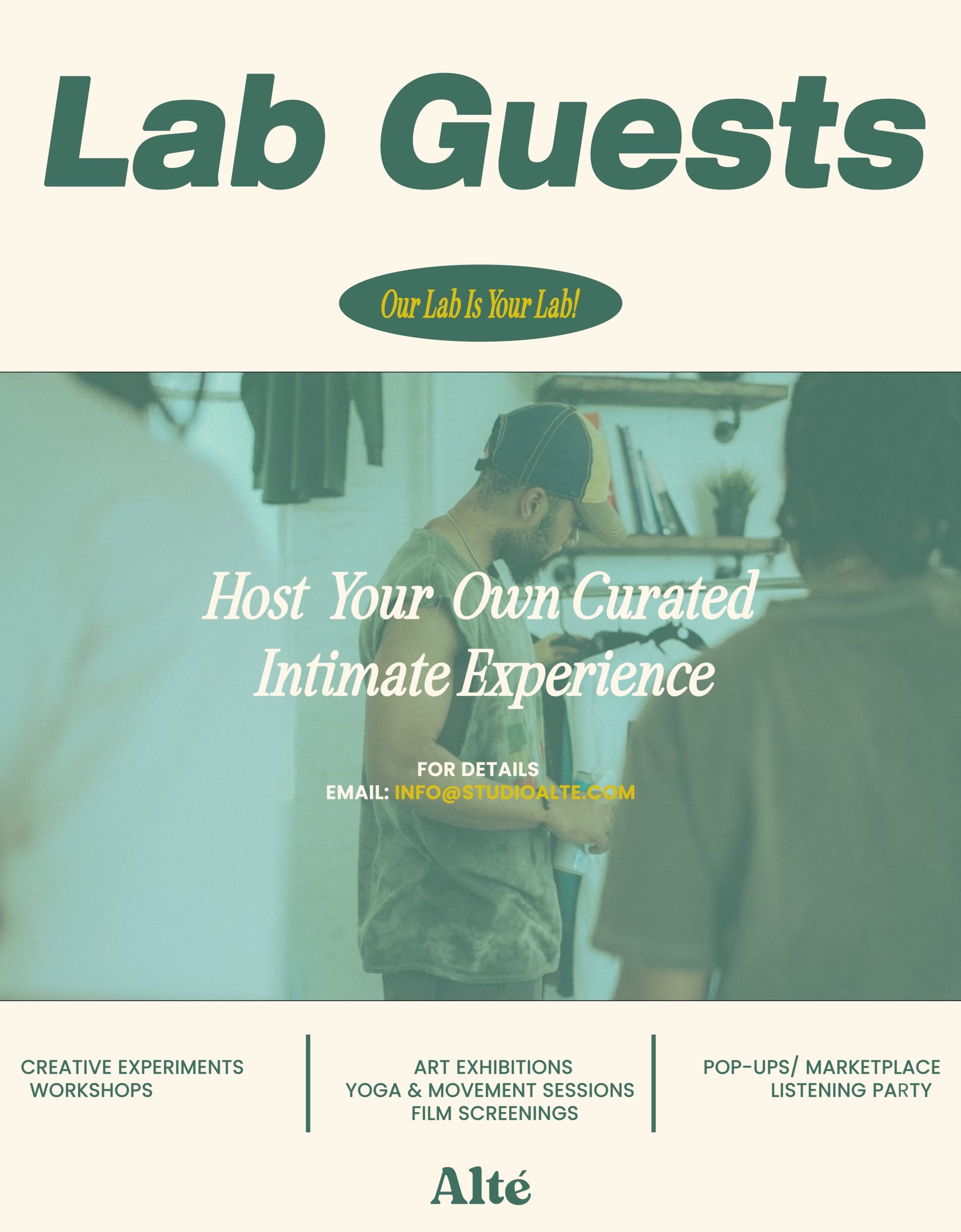 Our new “LAB GUESTS” events program is an open invitation for creatives, curators, and provocateurs to create unique communal experiences. Bring your concept and vision into our creative space. Our Lab IS Your Lab!